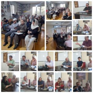 ↩ شازدەهەمین دانیشتنی حەوتووانەی ناوەندی فەرهەنگی هونەریی جامی ڕۆژی دووشەممە ڕێکەوتی ١ی گەلاوێژی ١٤٠٣ی هەتاوی، بۆ خوێندنەوەی ئازادی بەرهەمی ئەندامان و بەشداربووان تەرخان کرا. لە دانیشتنی ئەم حەوتوویەدا بابەتە ئەدەبییە جۆراوجۆرەکان لە لایان بەشداربووانەوە بە شێوەی خوارەوە پێشکێشی ئامادەبووان کرا.