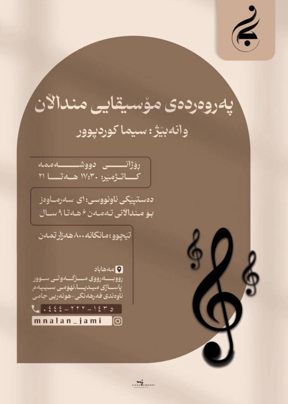 مهاباد-خیابان شافعی -پاساژ میدیا-طبقهی سوم-واحد ۳۰۱و۳۰۲ -مؤسسه فرهنگی،هنری-جامی