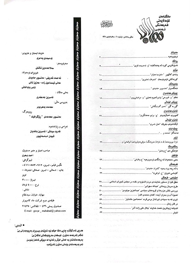 هاوڕێیانی ئازیزی گۆڤاری مەهاباد بۆ کڕینی ژومارەکانی گۆڤاری مەهاباد بە شێوازی فایلی پی دی ئێف تا کرانەویی دەرگای ئێلێکترۆنیکی کە پێویستیتان بە چ ژومارەیەک بوو تکایە پێوەندی بگرن بە تێلێفۆنەکانی بەشی پێوەندی ماڵپەڕەکەمان بە سپاسەوە هاوڕێ دەگەڵ رێزمان بۆ ئێوەی خۆشەویست.