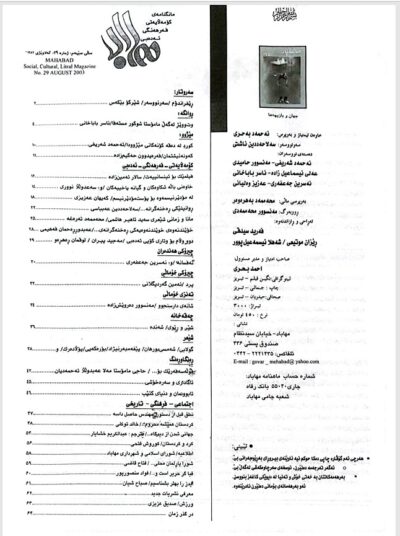 دوستان عزیز مجله مهاباد با سپاس و ادای احترام؛ برای خرید شماره های مجله مهاباد به صورت فایل پی دی اف تا بازشدن درگاه خرید ایترنتی لطفا با شماره های تلفن بخش پیوندهای وبسایت مجله تماس بگیرید.