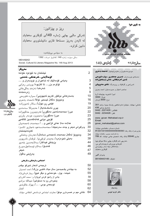 هاوڕێیانی ئازیزی گۆڤاری مەهاباد بۆ کڕینی ژومارەکانی گۆڤاری مەهاباد بە شێوازی فایلی پی دی ئێف تا کرانەویی دەرگای ئێلێکترۆنیکی کە پێویستیتان بە چ ژومارەیەک بوو تکایە پێوەندی بگرن بە تێلێفۆنەکانی بەشی پێوەندی ماڵپەڕەکەمان بە سپاسەوە هاوڕێ دەگەڵ رێزمان بۆ ئێوەی خۆشەویست.