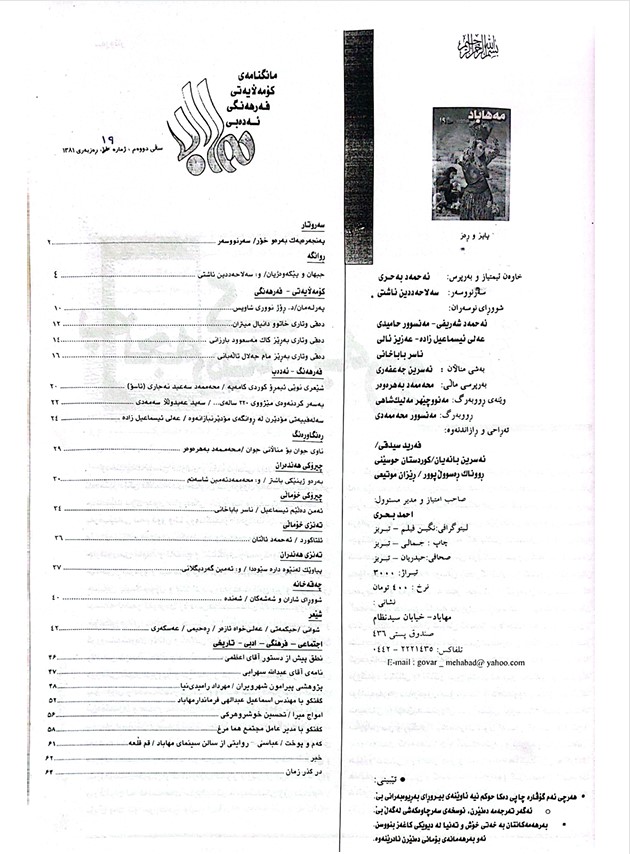 هاوڕێیانی ئازیزی گۆڤاری مەهاباد بۆ کڕینی ژومارەکانی گۆڤاری مەهاباد بە شێوازی فایلی پی دی ئێف تا کرانەویی دەرگای ئێلێکترۆنیکی کە پێویستیتان بە چ ژومارەیەک بوو تکایە پێوەندی بگرن بە تێلێفۆنەکانی بەشی پێوەندی ماڵپەڕەکەمان بە سپاسەوە هاوڕێ دەگەڵ رێزمان بۆ ئێوەی خۆشەویست.