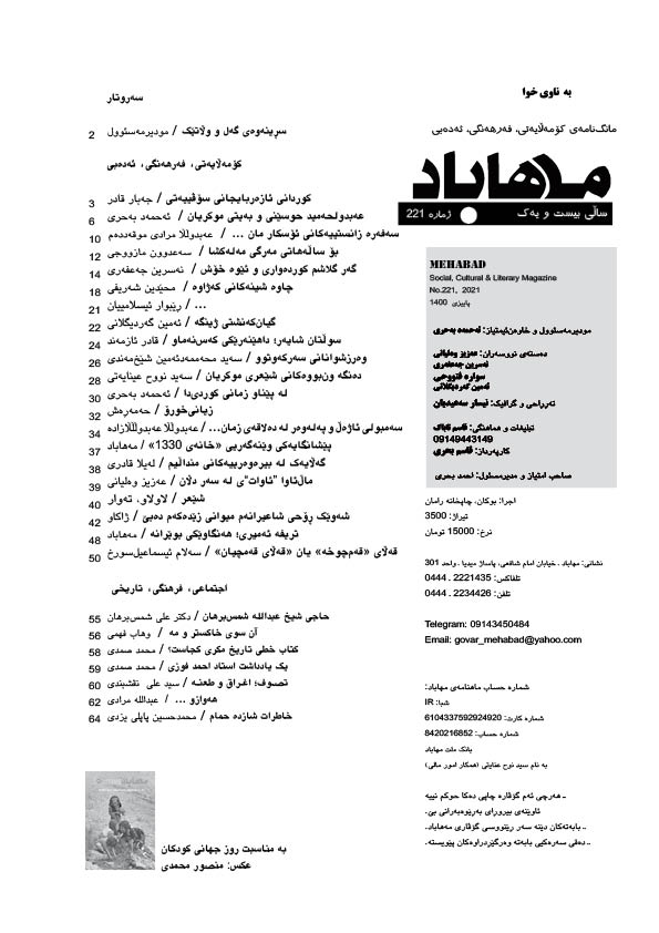 هاوڕێیانی ئازیزی گۆڤاری مەهاباد بۆ کڕینی ژومارەکانی گۆڤاری مەهاباد بە شێوازی فایلی پی دی ئێف تا کرانەویی دەرگای ئێلێکترۆنیکی کە پێویستیتان بە چ ژومارەیەک بوو تکایە پێوەندی بگرن بە تێلێفۆنەکانی بەشی پێوەندی ماڵپەڕەکەمان بە سپاسەوە هاوڕێ دەگەڵ رێزمان بۆ ئێوەی خۆشەویست.