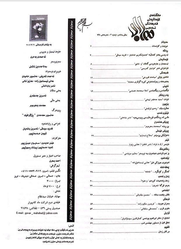 دوستان عزیز مجله مهاباد با سپاس و ادای احترام؛ برای خرید شماره های مجله مهاباد به صورت فایل پی دی اف تا بازشدن درگاه خرید ایترنتی لطفا با شماره های تلفن بخش پیوندهای وبسایت مجله تماس بگیرید.
